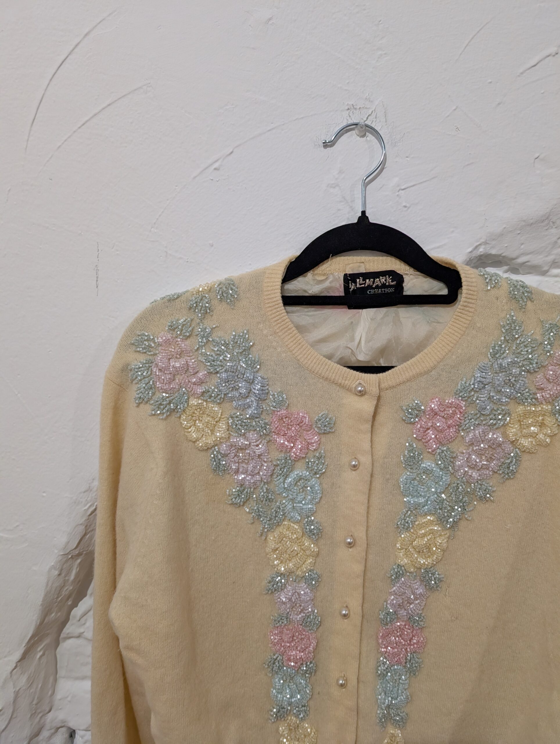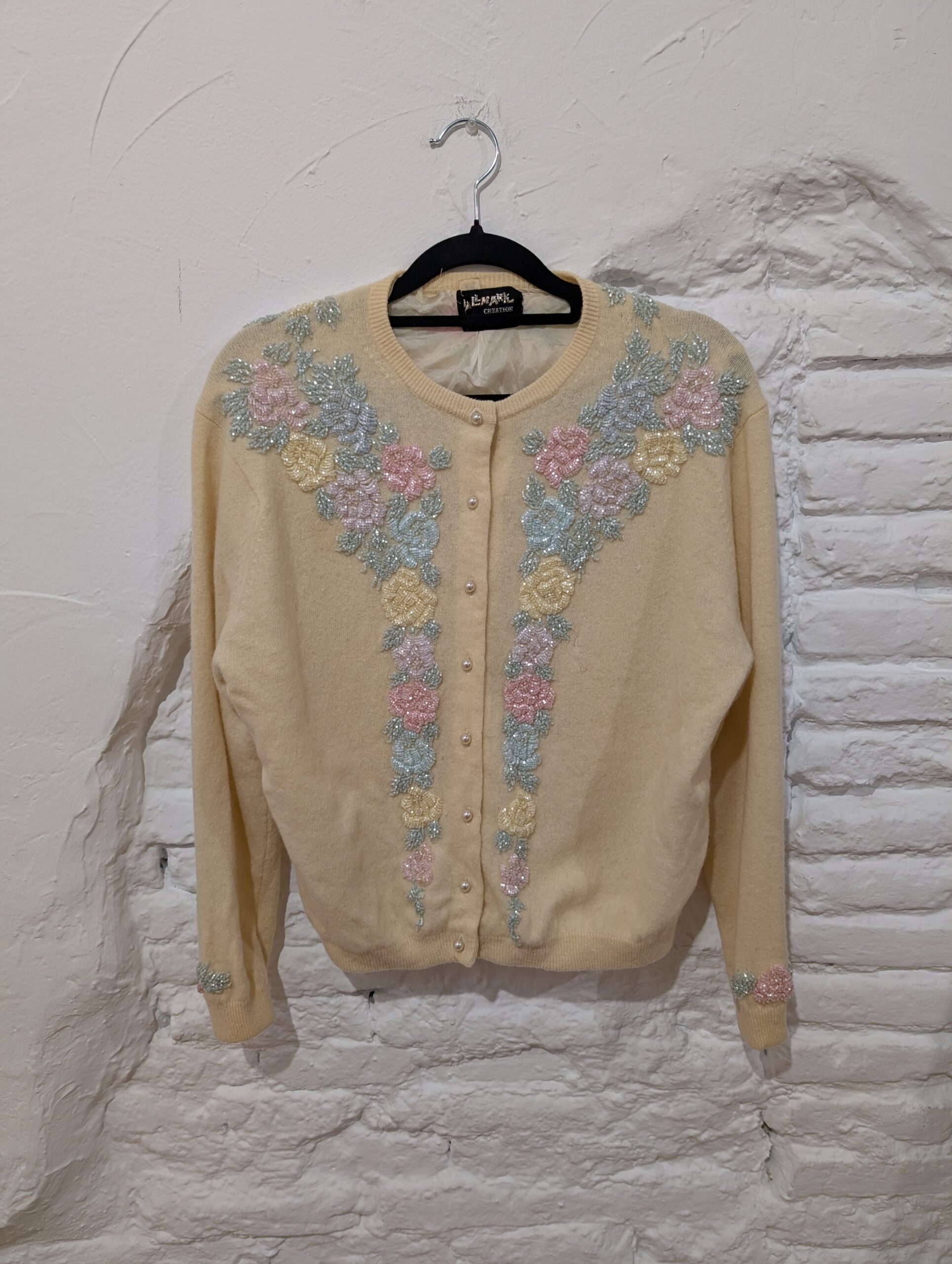 CÁRDIGAN AMARILLO FLORES ABALORIOS